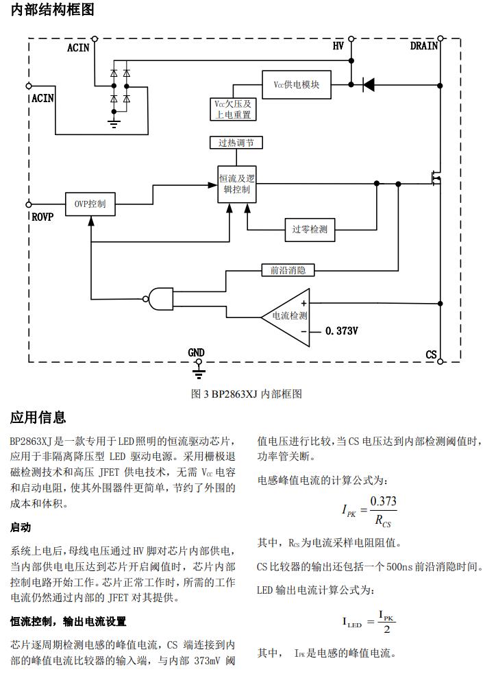 BP2863XJ適用于85伏~265伏全范圍輸入電壓的非隔離降壓型領先恒流電源,芯片ROVP引腳帶使能夠功能,適用于開關調(diào)色和感應燈應用