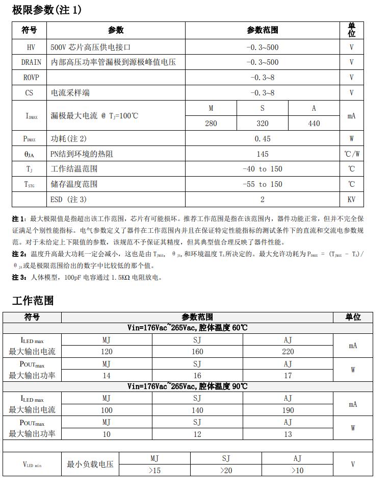 | PRODUCT MODEL | encapsulation | MOS internal resistance | MOS withstand voltage | Over temperature protection | open protect | Output current @ Vout=72V (mA) (Vin=176V-265V) | Maximum output power (W) (Vin=176V-265V) |