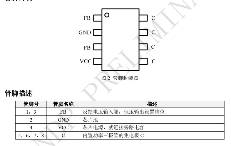 ? 集成 BJT,適用于 12W 以下隔離方案 ? 內置啟動電路,無需啟動電阻 ? 內置 FB 下偏電阻 ? 內置高精度的固定峰值電流,恒流精度高 ? 極低的待機功耗