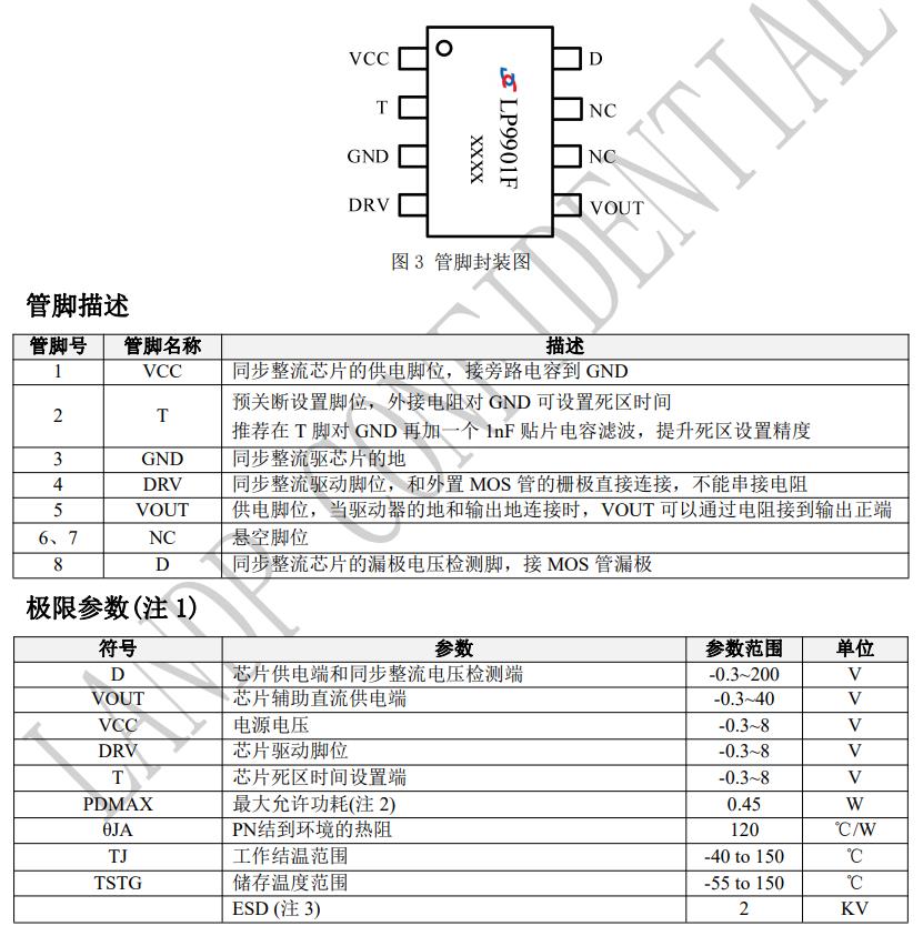 ? 防潮等級 MSL1 媲美進口芯片,潮濕戶外環(huán)境 使用無憂 ? SOP8 封裝,加強散熱能力,可以驅動大功率 同步整流 MOS