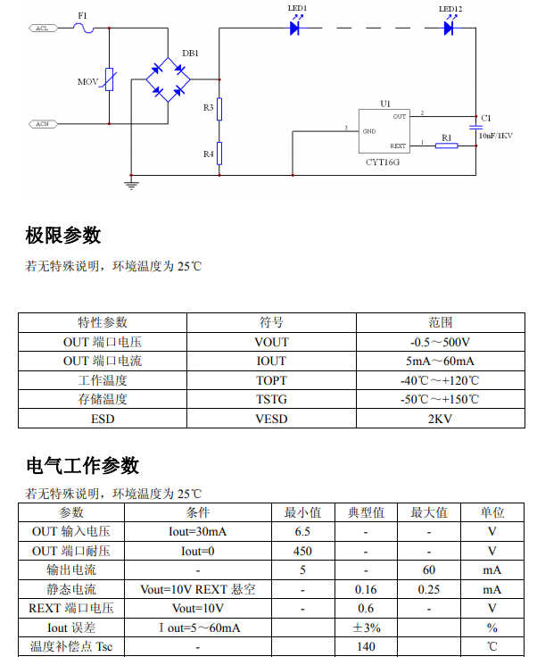 CYT16G is a linear constant current IC with adjustable output current, high constant current precision, simple application scheme, cost equivalent to resistance-capacitance step-down, and over-tempera...