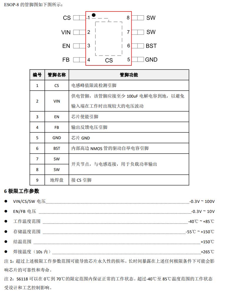 NS6118 采用 ESOP8 的標準封裝。