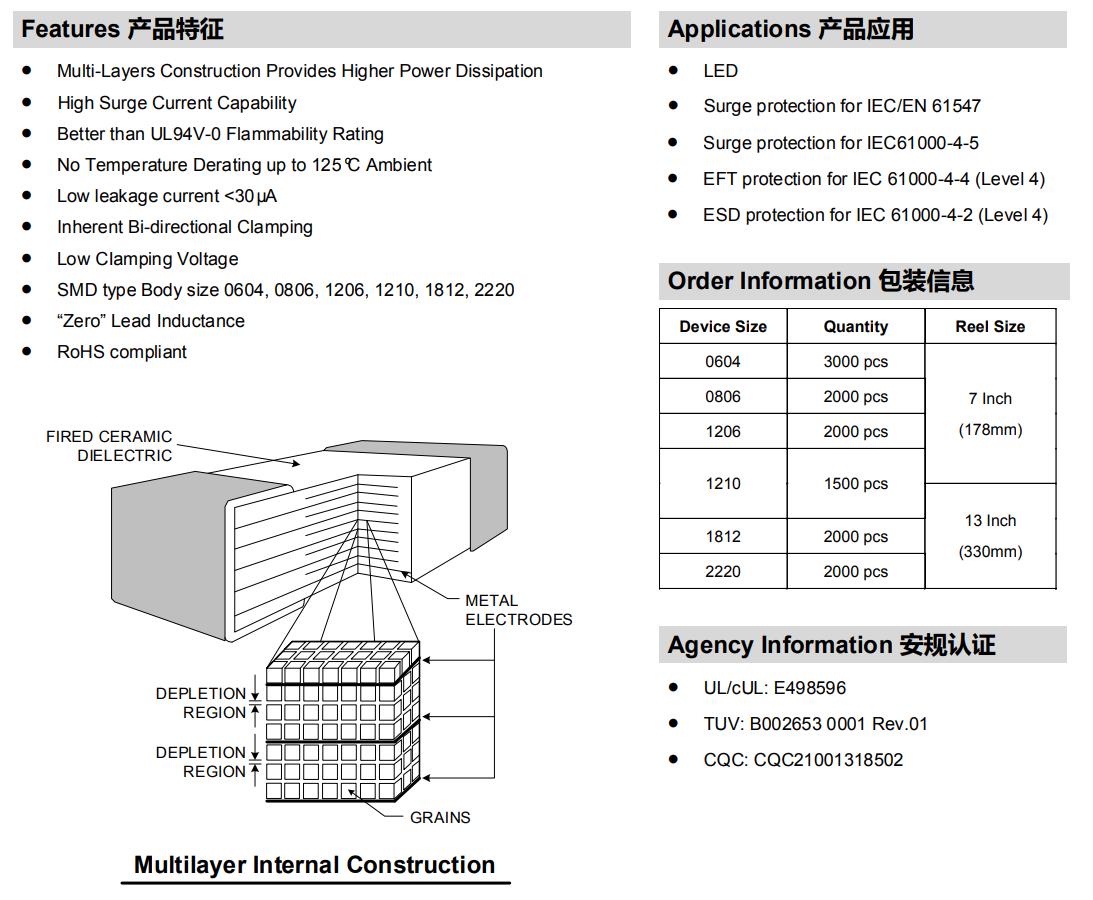 • Multi-Layers Construction Provides Higher Power Dissipation , High Surge Current Capability , Better than UL94V-0 Flammability Rating , No Temperature Derating up to 125oC Ambient , Low leakage current