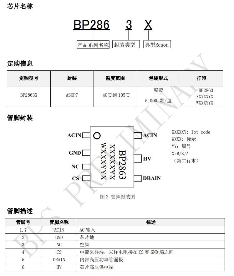 | BP2863X | ASOP-7 | 22Ω-12Ω | 500V | 140℃ | - | 120-190 | 18 |