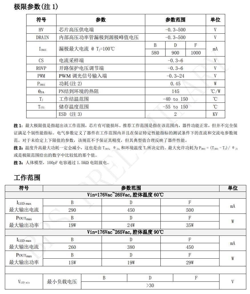 | 產品型號 | 封裝 | PF | 拓撲 | 功率 | MOS | 開路保護 | 調光方式 |