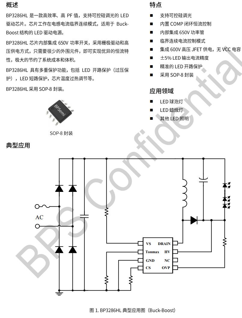 BP3286是一款高效率、高PF值,支持可控硅調(diào)光的LED 驅(qū)動芯片。芯片工作在電感電流臨界連續(xù)模式,適用于Buck-Boost結(jié)構(gòu)的LED 驅(qū)動電源。