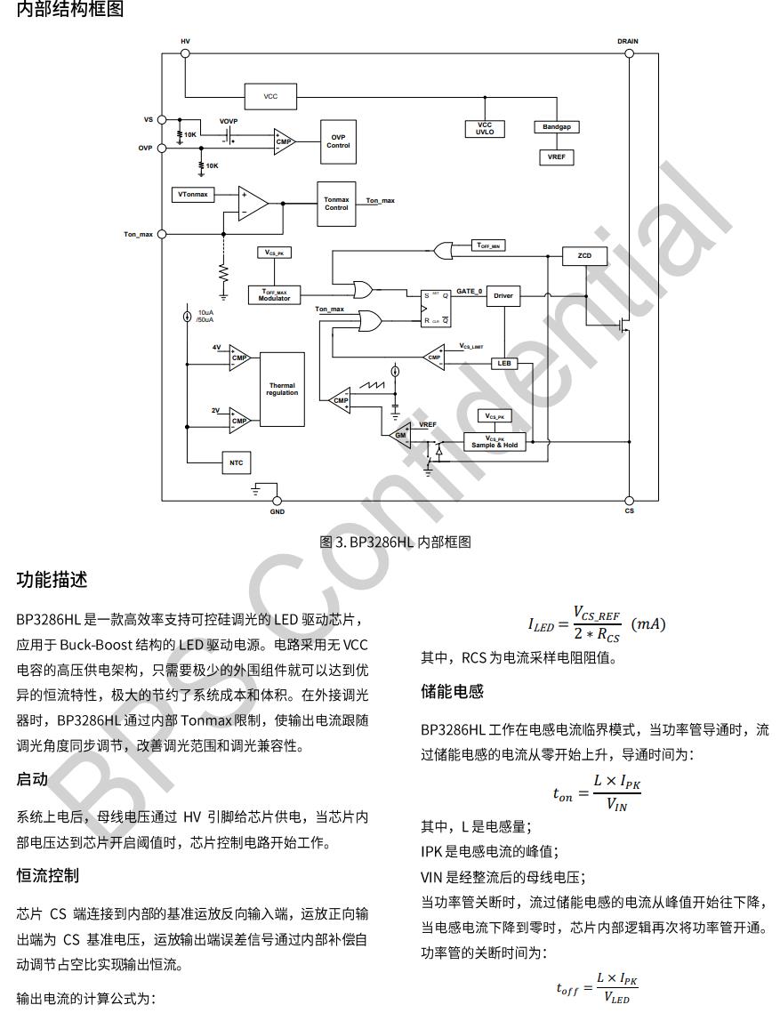BP3286芯片內(nèi)部集成650V功率開關(guān),采用柵極驅(qū)動和高壓供電方式,只需要很少的外圍元件,即可實現(xiàn)優(yōu)異的恒流特性,極大的節(jié)約了系統(tǒng)成本和體積。