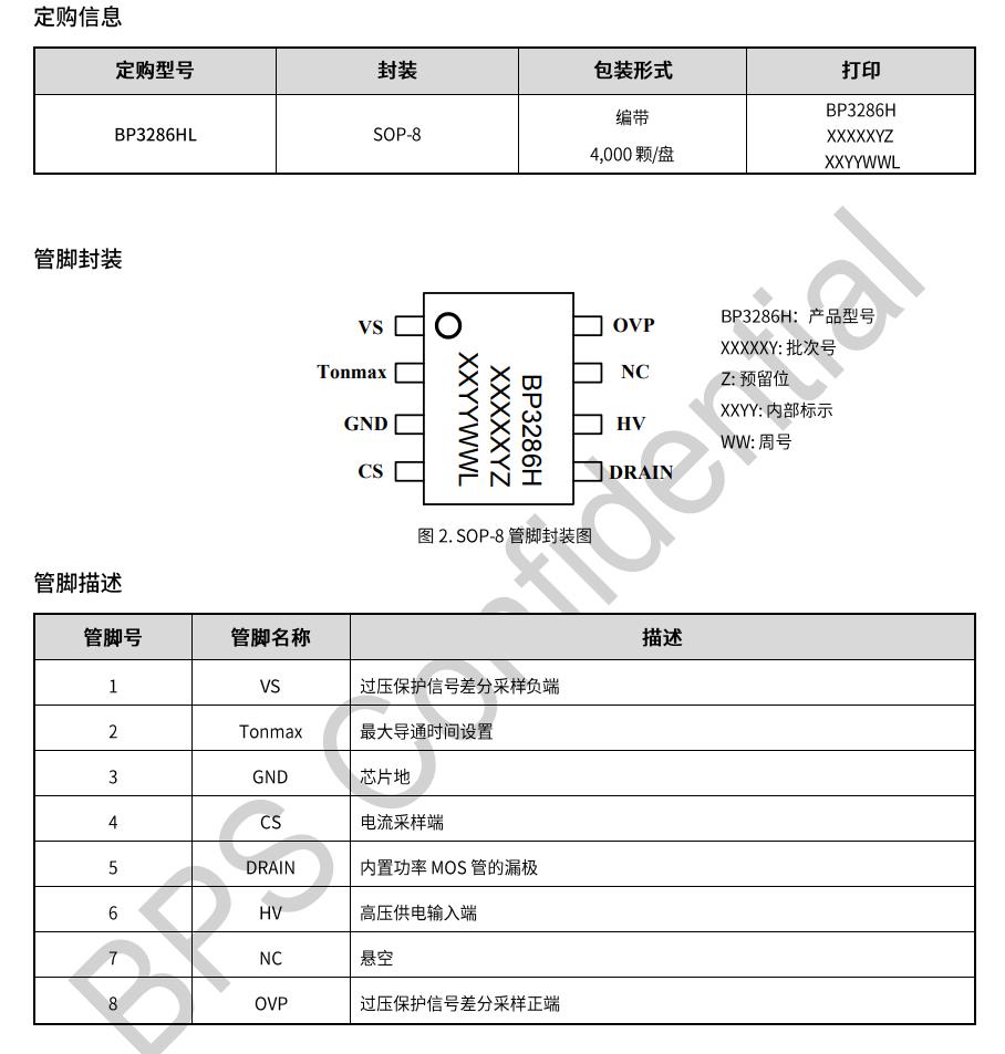 | BP3287HL | SOP8 | 0.9 | 4.7Ω | 650V | Buckboost/Flyback | Y | <10W | <12W |