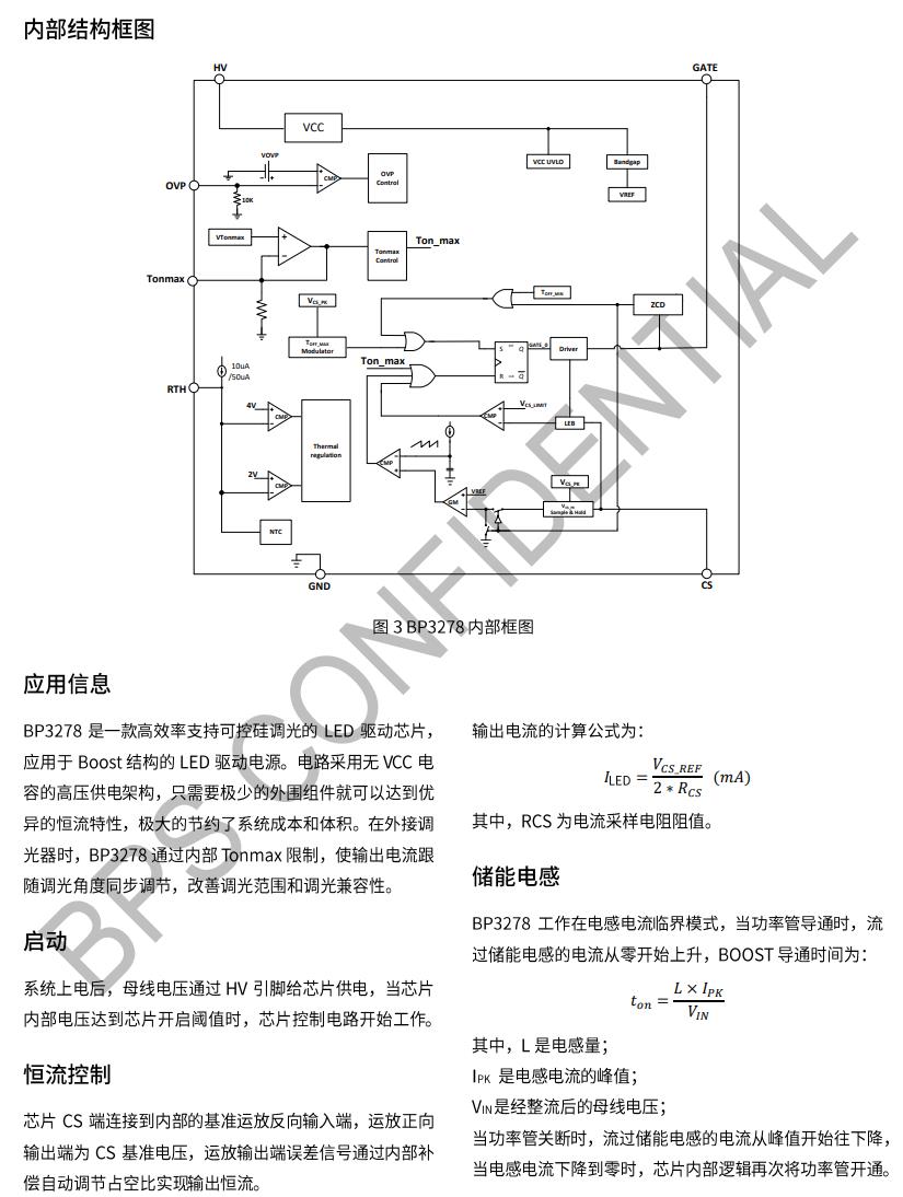 BP3278是一款高效率高PF 值,支持可控硅調(diào)光的 LED驅(qū)動芯片。芯片工作在電感電流臨界連續(xù)模式,適用于Boost結(jié)構(gòu)的LED 驅(qū)動電源。 BP3278芯片采用極驅(qū)動和高壓供電方式,只需要很少的外圍元件,即可實現(xiàn)優(yōu)異的恒流特性,極大的節(jié)約了系統(tǒng)成本和體積。