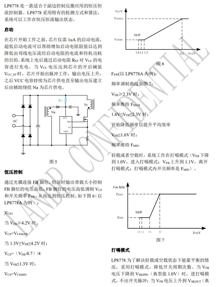 LP8778 是一款適合于副邊控制反激應(yīng)用的恒壓恒 流控制器。 LP8778 采用特有的檢測(cè)方式和算法,系統(tǒng)可以工作 在恒壓恒流輸出狀態(tài)。 系統(tǒng)采用多模式控制方案,在恒壓工作狀態(tài)時(shí),芯 片采用峰值電流控制模式,并且在中載以下開始降 低頻率以提升平均效率,在輕載或者空載時(shí),系統(tǒng) 工作在打嗝模式。 恒流工作狀態(tài)時(shí),固定電流限流基準(zhǔn)值來(lái)實(shí)現(xiàn)恒流 功能。 芯片采用特有的頻率抖動(dòng)技術(shù)來(lái)改善 EMI 指標(biāo)。