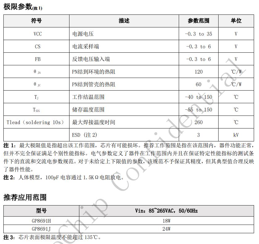 初次級高壓測試芯片高可靠性原邊反饋控制恒壓、恒流精度高≦75mW待機(jī)功耗可調(diào)的輸出線損補(bǔ)償技術(shù)FB開路保護(hù),過壓保護(hù),欠壓保護(hù),過溫保護(hù),F(xiàn)B到地短路保護(hù),次級繞組短路保護(hù),次級肖特基短路反接保護(hù),輸出過欠壓保護(hù)。