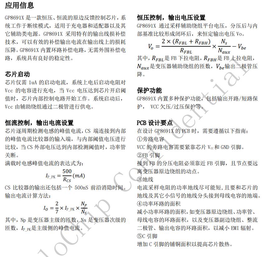 GP8691X內(nèi)置環(huán)路補(bǔ)償電路,無需外圍補(bǔ)償電路,系統(tǒng)具有良好的穩(wěn)定性。