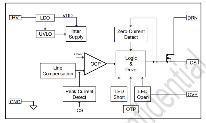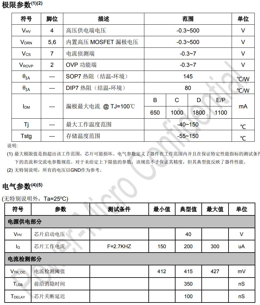特點 ? 集成高壓啟動和供電 ? NO-CAP專利技術 ? 兼容寬輸入電壓應用 ? OVP電壓外部可調 ? 電感電流臨界模式 ? LED開路保護 ? LED短路保護 ? 過溫調節技術 ? 關機無回閃 ? 低輸入不閃燈