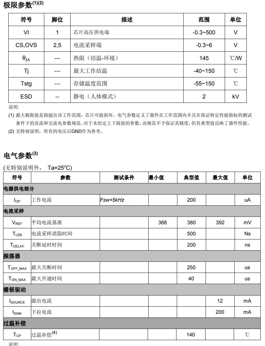 特點(diǎn) ? 無VCC電容 ? 高壓供電,無啟動(dòng)電阻 ? 寬電壓輸入電壓 ? ±5% LED輸出電流精度 ? 電感電流臨界模式 ? 外置可編程開路保護(hù) ? LED短路保護(hù) ? 過溫補(bǔ)償