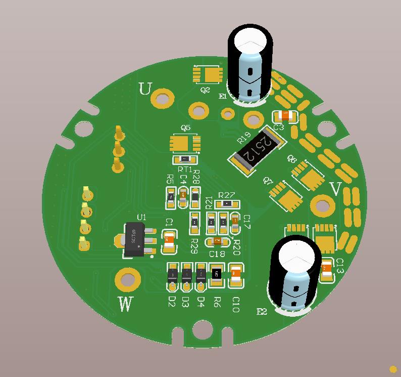 整體布局遵循功率回路與小信號控制回路分開布局原則,功率部份在滿足銅箔載流量與溫度敏感器件距離的前提下,按最小環(huán)路面積布局。 芯片的放置方向優(yōu)先考慮驅(qū)動出線,電流采樣以及反電動勢采樣等關(guān)鍵信號。 單元電路地回路按輸出回輸入原則走線 Rsense 電阻盡量靠近輸入 Bulk Capacitor 布局 濾波電容抵近端口放置 電阻分壓采樣下偏阻容盡量抵近檢測端口放置 (特別是反電動勢采樣與電流采樣相關(guān)) 驅(qū)動 Rg 電阻抵近 MOSFET 放置 NTC 溫度傳感器貼近熱源放置