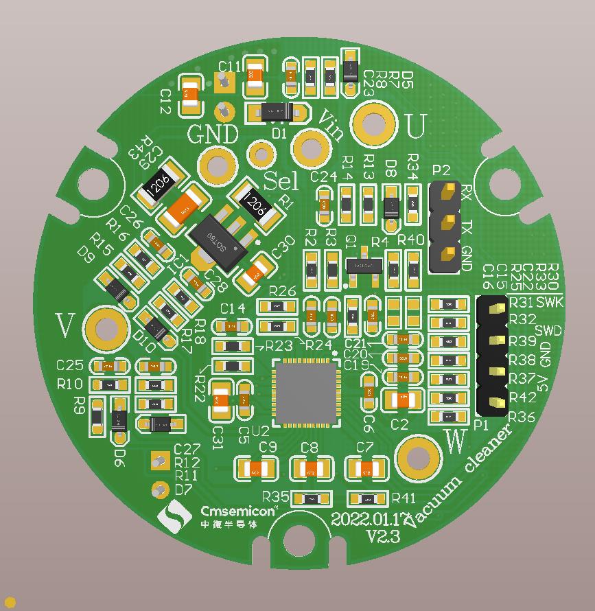 CMS32M5533 是 ARM-Cortex M0 內(nèi)核, 同時內(nèi)置 90V 三相半橋驅(qū)動模塊芯片。MCU負責整個系統(tǒng)的信號采集, 數(shù)據(jù)處理, 驅(qū)動輸出, 邏輯功能控制。